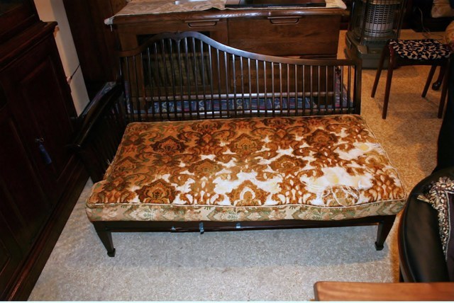 生地が日焼けと擦り切れで中のウレタンが見えて元の生地の色合いが分からないぐらいの状態でした。木部もキズと割れなどもあります。