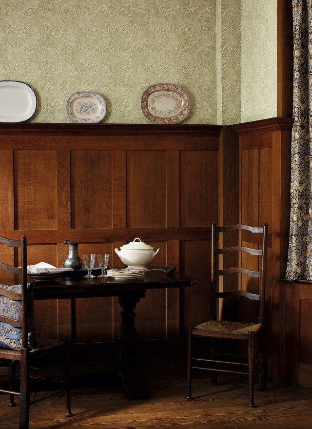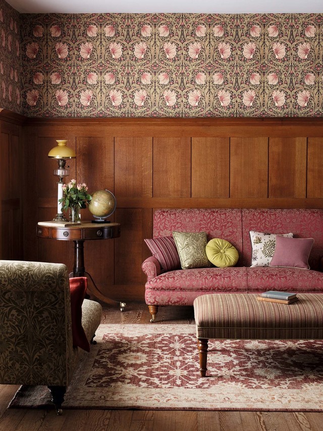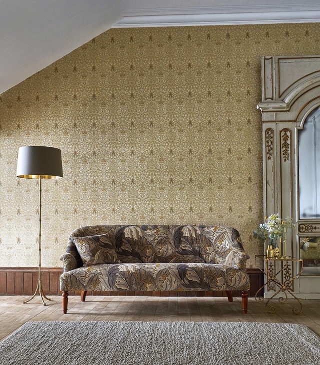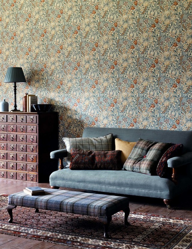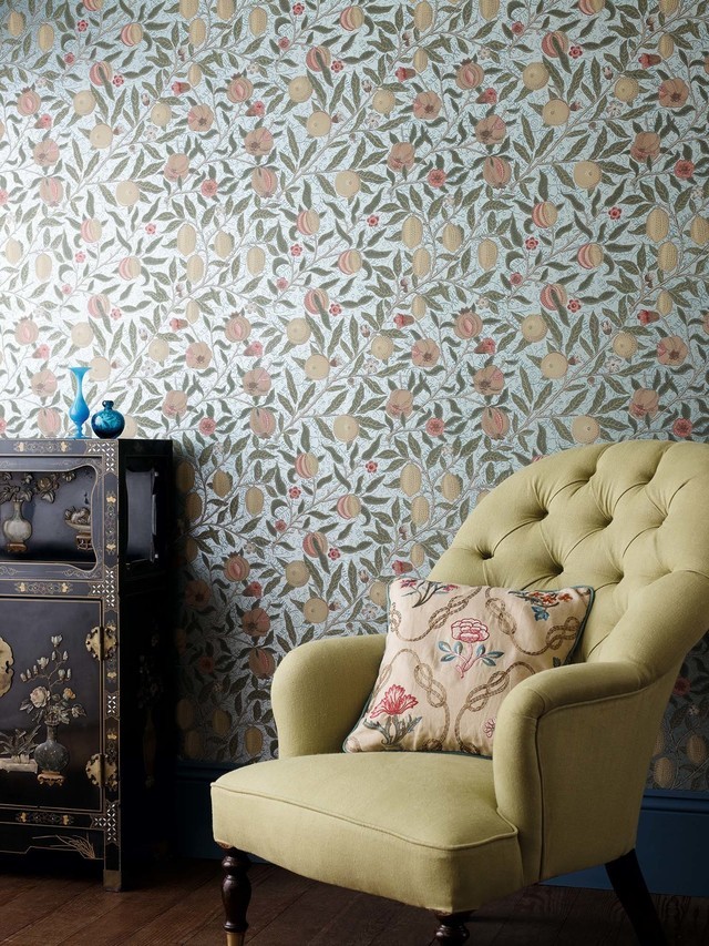ウィリアム・モリスのデザインの中で最も愛される壁紙、植物や鳥などの自然に親しみインスピレーションを受けた壁紙。細部まで描写することで、枝や果実がイキイキと描かれていて私たちの暮らしに心地よさを感じ取れます。