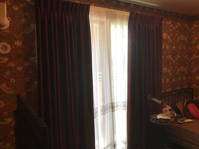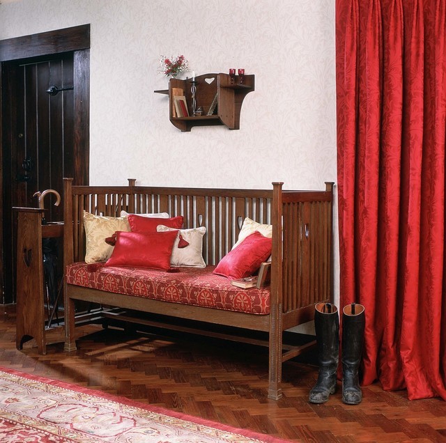 カ-テンに合わせて、モリスの赤の壁紙を選ばれました。