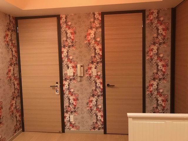 仕上がり、とても喜んでいただきました。壁紙を輸入の柄や色を小さな見本で見るときれいだけれど交換するのは、なかなか勇気が必要です。