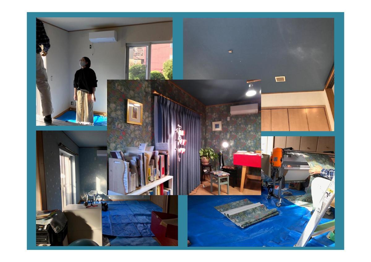 一部屋の目安で壁一面を紙壁紙(ウイリアム・モリスの壁紙)で3面はビニールクロス(無地)での仕上がりです。