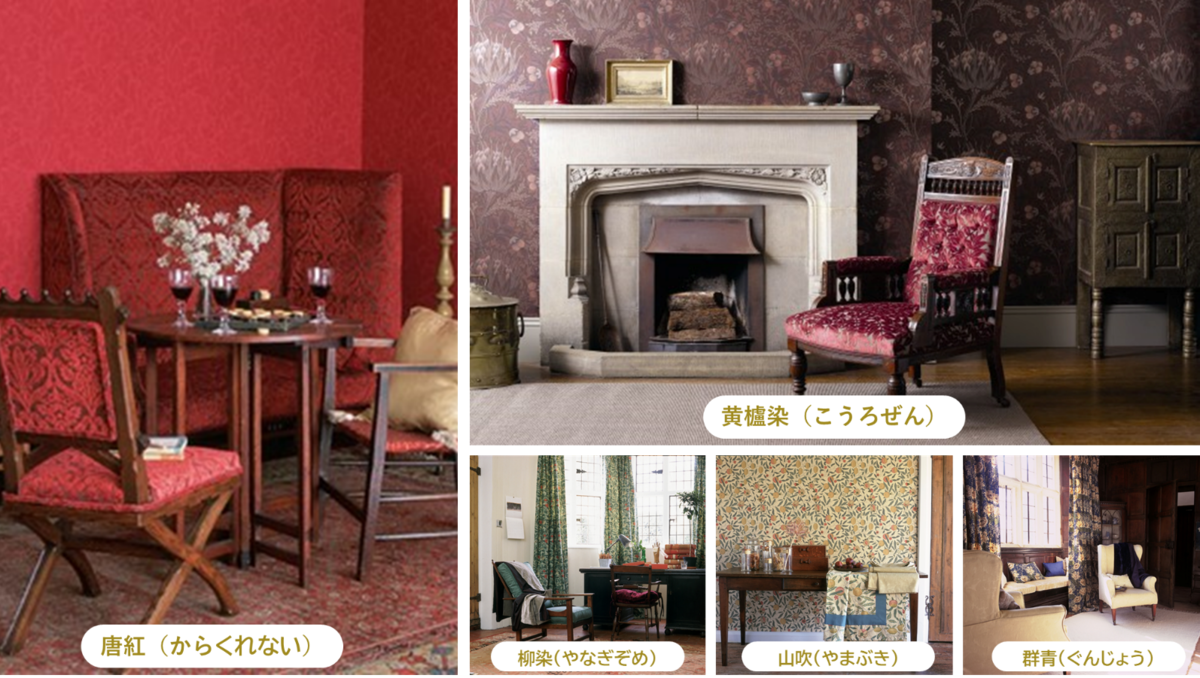 古来の伝統色は、私たち日本人に親しまれている自然の中にある色が、身近なインテリアやファッションで使われています。ジャポニズムによって、イギリスでも同じような色づかいが広まっていきました。日本の伝統色とイギリス出身のデザイナー、ウイリアム・モリスが大切にしている自然を家の中に取り入れる、自分だけの世界を感じる事ができます。