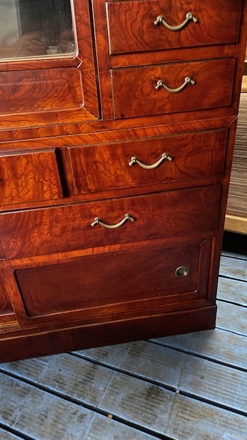 長年使われている和茶タンスは、修理もしてありましたが扉の角が隙間が出来、開閉がスムーズにいか状態でした。使いずらいと、ドンドン使われなくなり状態が良くないので全体のメンテナンスをしながら使いずらい所を直すことにします。新品同様まではいきませんが、かなりいい状態まで直すことが出来ました。
