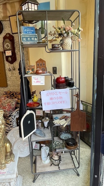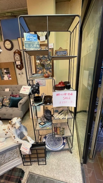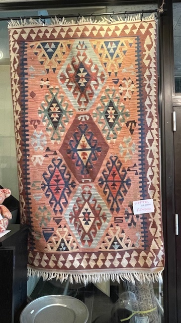商品を随時入れ替えして展示をしています。備品で使われていた家具などは、お得なものが多くあります。両袖デスクは¥88,000で、送料は別途になります。アンティーク キリムは半額以上のお得な商品です。お勧めはスペイン数百年の歴史があるタイルもあります。