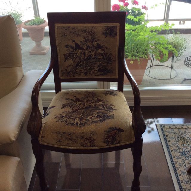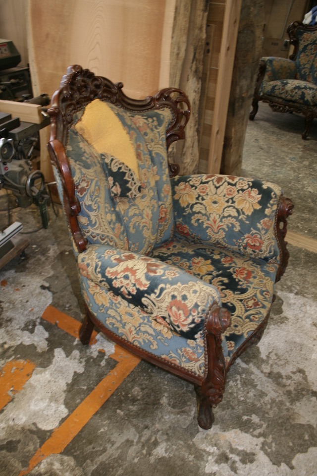 イスの生地をゴブラン織りからオランダ製のモケット生地で張り替えました。