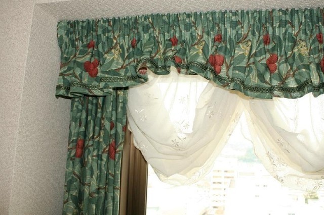 デザインカ-テンと額絵やインテリア小物のレイアウトをさせていただきました。