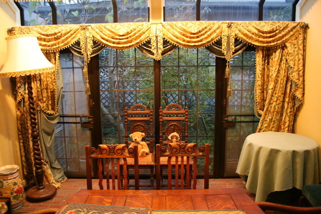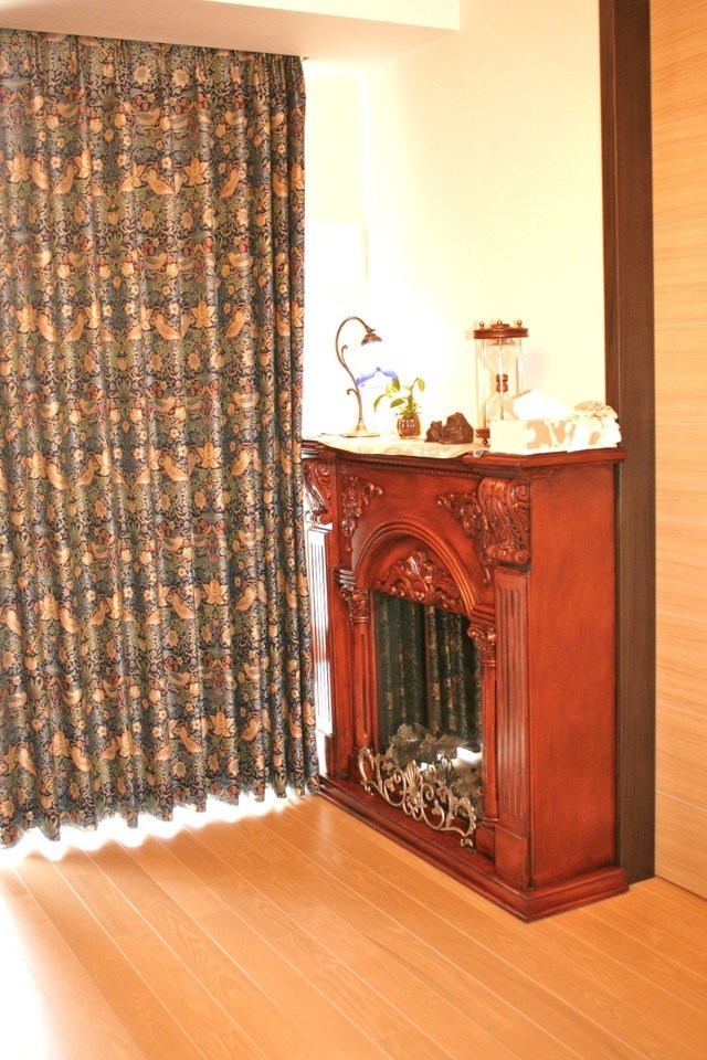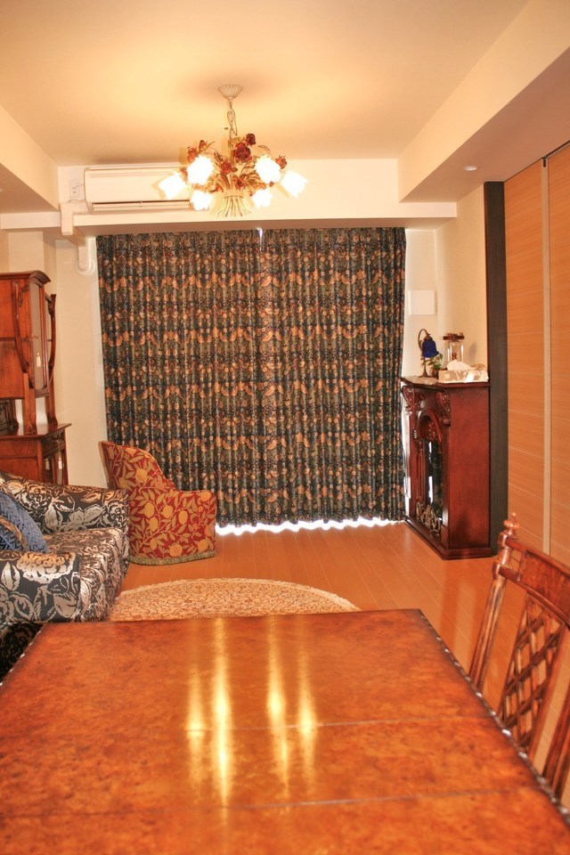 マンションのリフォームをした御客様のお部屋に夢のある理想の自分だけのお城をイメージしています。ウインドトリートメントや家具や照明を納品させていただきました。以前に納めたお友達であるお客様の紹介で、家具選びから、デザインカーテンを時間を掛けて打ち合わせをしてお客様の希望通りのお部屋作りが出来ました。ウイリアム・モリスの生地で少し大人の雰囲気で、色を抑えたイギリステイストの雰囲気にしました。家具は、ジョージアンスタイルをメインにしています。