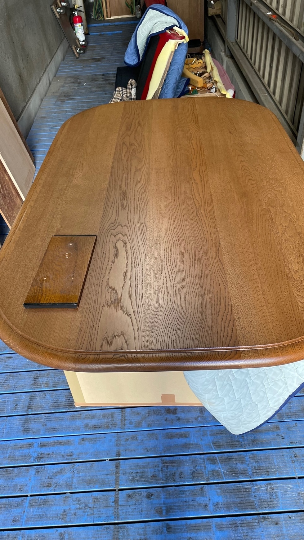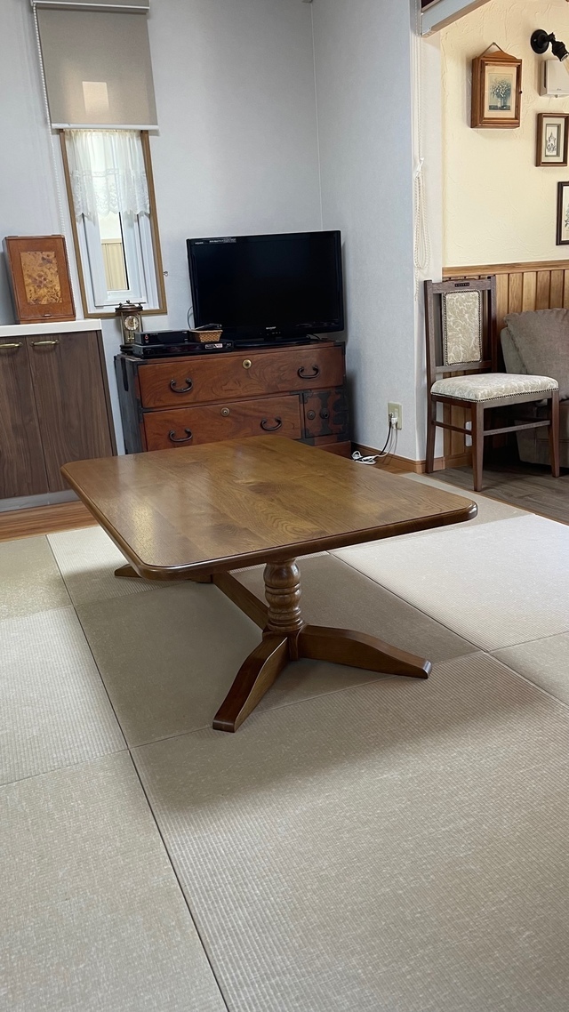 家族構成が変わり、今の暮らしを考えたお部屋の使い方を考えご相談をいただきました。始めは傷んだダイニングテーブルの再塗装,オーダーメイド家具の製作、ソファセットの張替えなどの内容です。