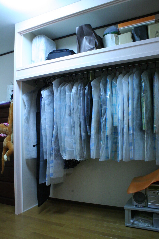 寝室の押入れをクローゼットにリフォームで、扉を付けずにカーテンで仕上げました。