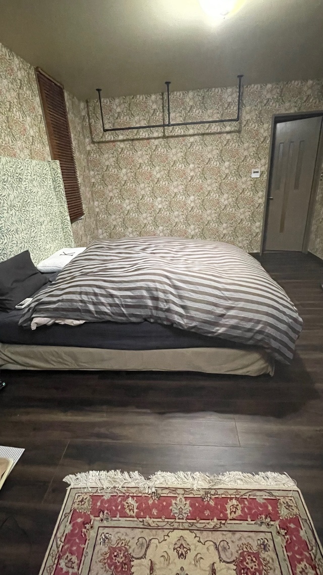 寝室は落ち着いたモリスの壁紙で全面張り替えています。