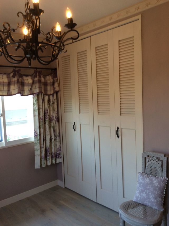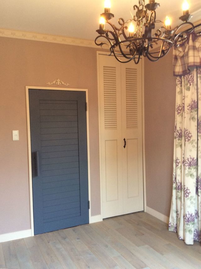 壁は塗装仕上げでイギリスのイメージで考えており一般のリフォームと違い、天井・壁・床はイギリスF&Bの水性塗装を使い現場での作業にも満足です。収納部分2か所はルーバータイプの無垢材を使ったオーダーメイド折戸を使用してもらい部屋全体のカラーコーディネートがいいです。