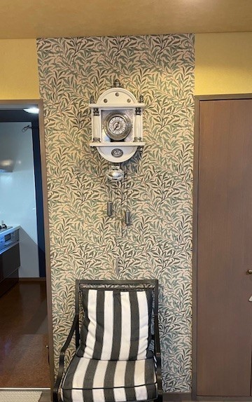 毎日頻繁に使く場所の壁紙が汚れてしまい全部貼り替えしようか悩んでいました。たまたまモリスの壁紙が少しあるので、汚れている狭いスペースだけ柄物で貼り替えています。