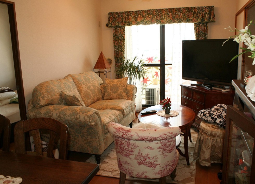 左側の画像は、アンティーク調の家具でオシャレにコーディネートしました。