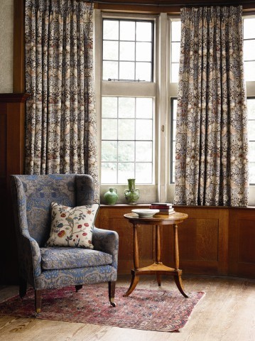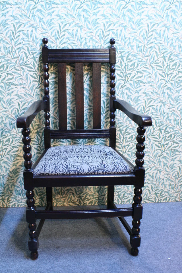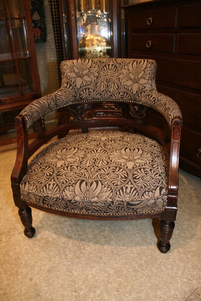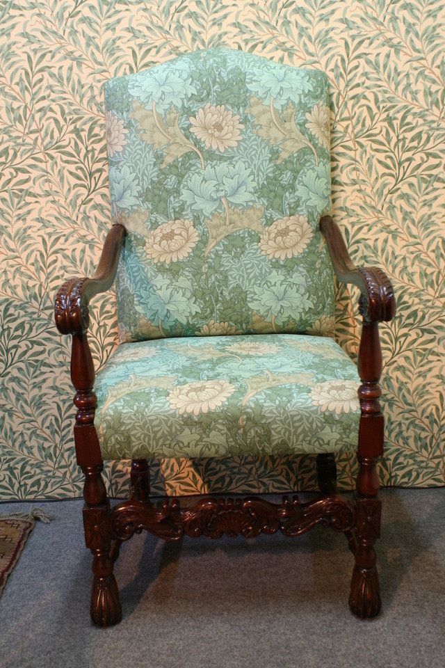 生地はモリスデザイン Fruit (1864年デザイン)で、椅子張り専用の織生地でしっかりしています。