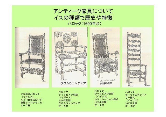 クロムウェルチェア・・・・・ピューリタン(イギリス国教会に改革を求めプロテスタント)通常清教徒と言われている。家具に彫刻を施すのは 神の意思に反すると言うことで、シンプルなデザインの家具が多い