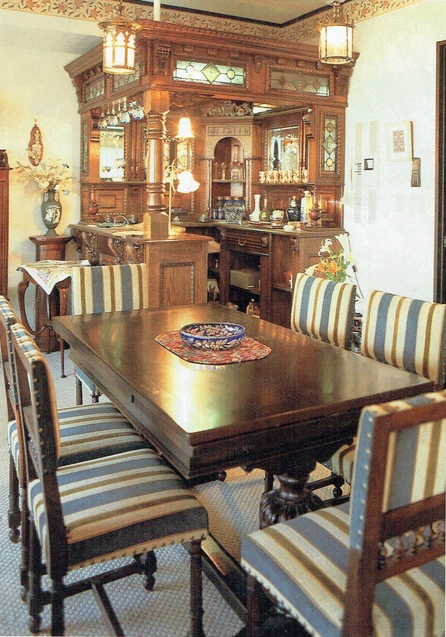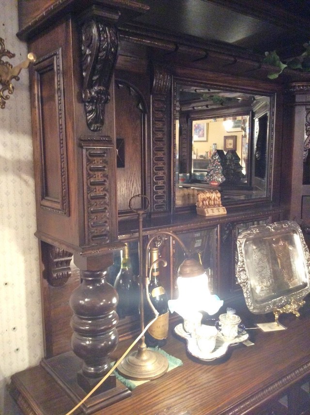 サイドボードには、上部にミラー付きの豪華なミラーバックサイドボードと カトラリーやデキャンタなど食事の際に必要な物を収納していたサイドボードがあります。
