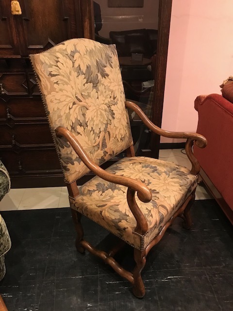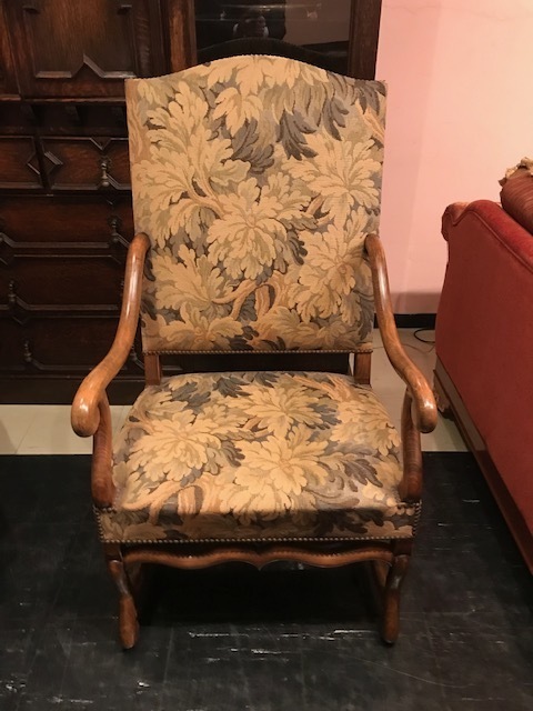 フランスの17世紀、中世の美術を総称するバロック様式、ルイ14世のデザインを元にして作られています。生地の風合いと木部のフレ-ムが落ち着いた感じで、背もたれが高く頭まで安定させてくれるチェアです。