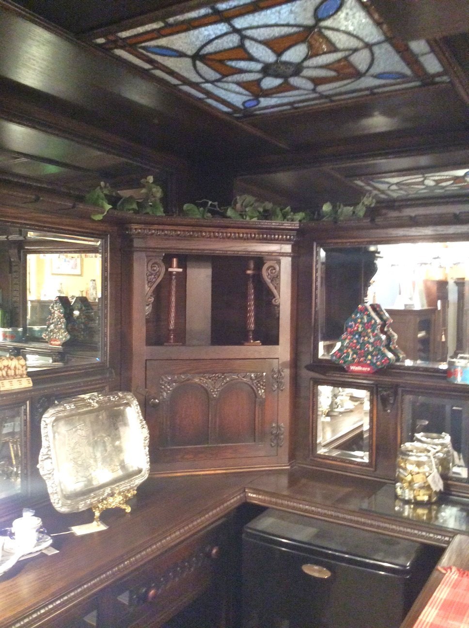 コーナー型のバーはお部屋の隅に自分だけのバーでお酒を飲むのが楽しくめると思います。天井にはステンドグラスがはめ込まれカウンターの中に入ると色とりどりの光が入り不思議と落ち着く空間です。目をつぶればイギリスのパブにいるような感覚を味わえるかもしれませんね。大きさは約2畳分ぐらいで組み立て式で8分割になります。
