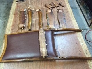 25年ぐらい前にお買い上げのお客様で、テーブルの天板塗装直しとイスのぐらつきと張り替えをされました。座面の底板が折れてしまいすわり心地が悪いので板を交換して古いクッション材の劣化もあるので交換しました。古いイスのクッションはわたや馬のシッポが入ってることもあるのでお客様と相談しながら修理を進めます。