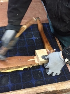 万力を使い組み立てをしています。