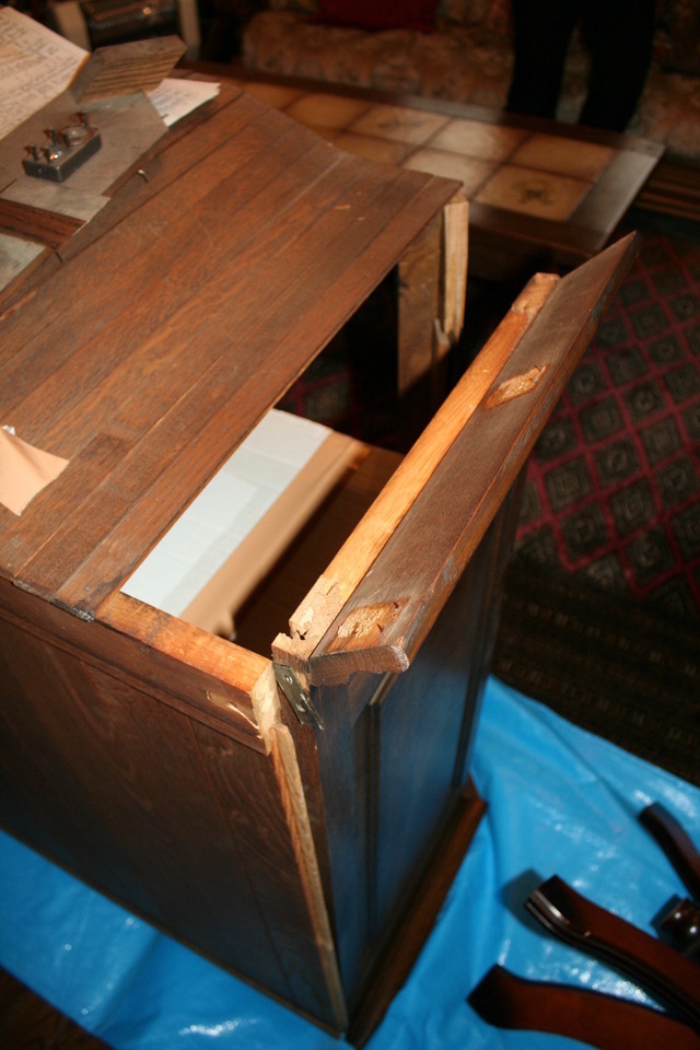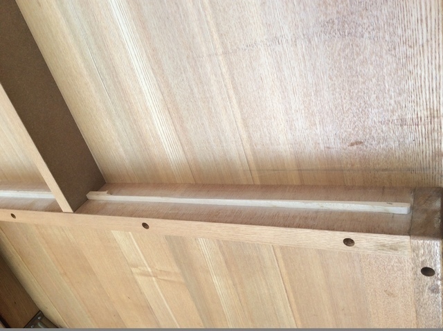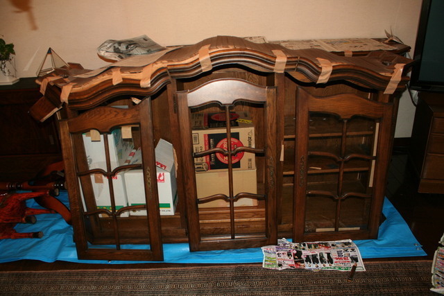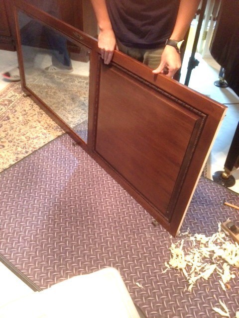 一度実物を見せていただき難しい家具のリフォームでしたが、仕切り板を外しても強度や収まりが心配でしたが小口などもシートを張りきれいに仕上げられそうなので分解しながら手直しをしました。