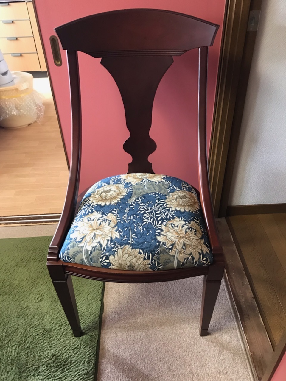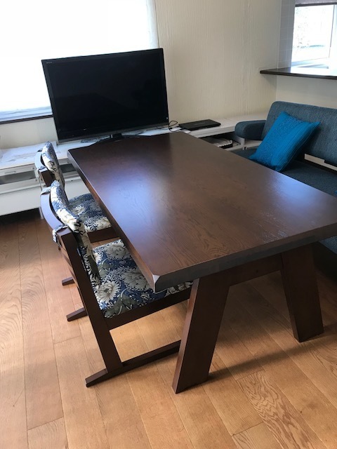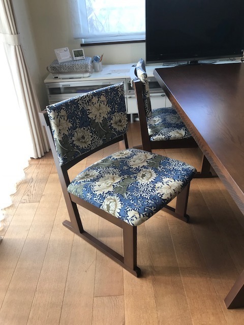 両親の代から譲り受け、小さな子供がいる為、傷み始めていましたリビングのテーブルと椅子の張り替えを依頼させて頂きました。