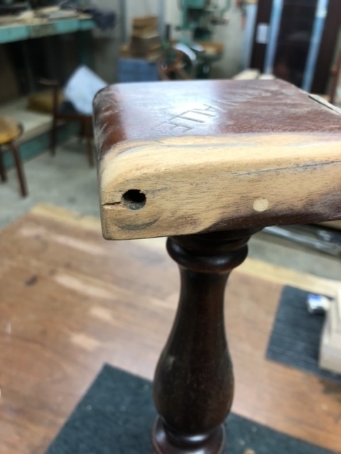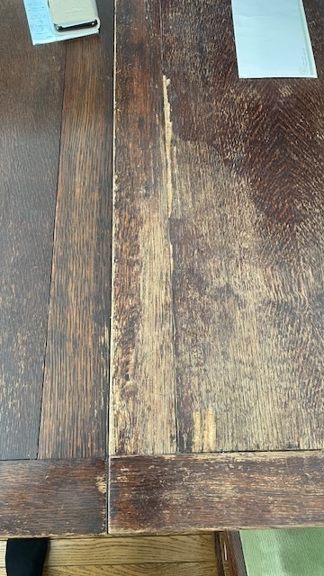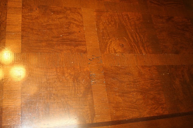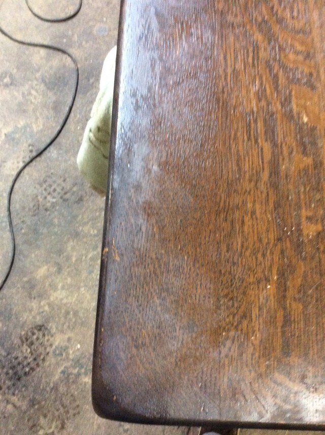 全体にキズもあり一つ一つ丁寧にキズを埋めて塗装直しをしてアンティークの風合いをそのまま生かし仕上げています。今までどんな修理でもしてきましたので諦めないでご相談ください。