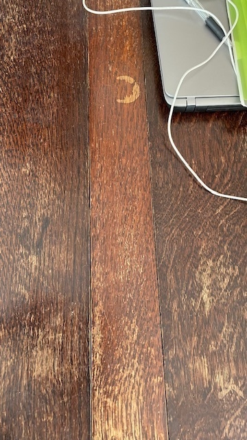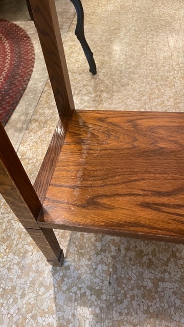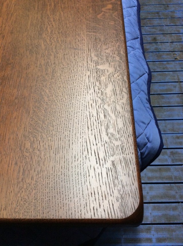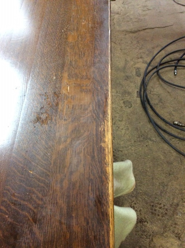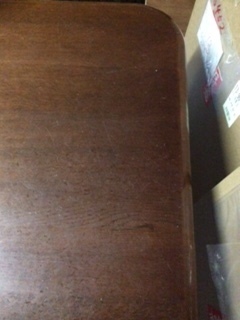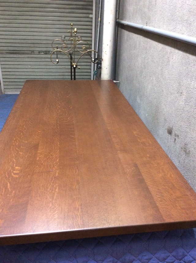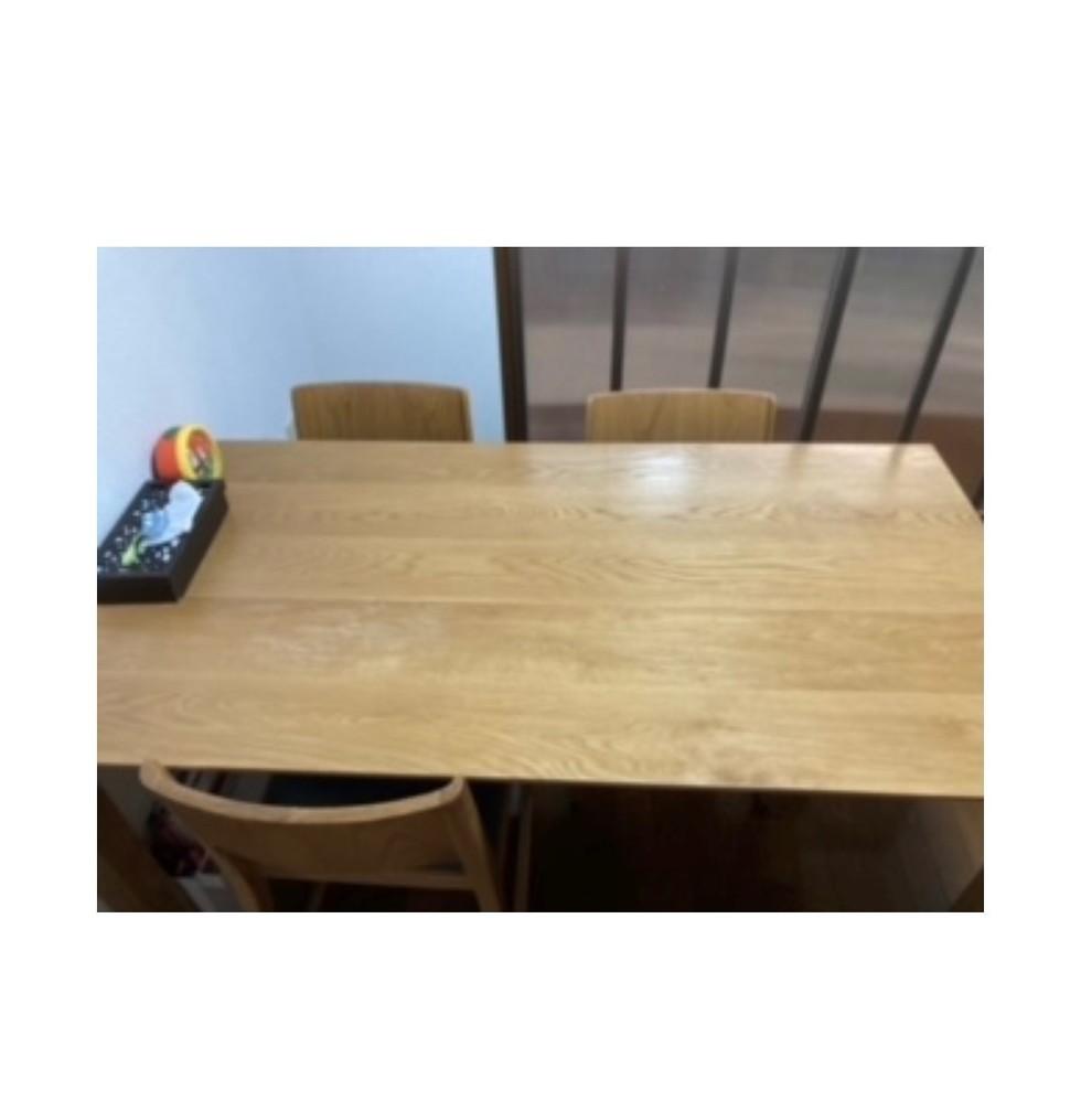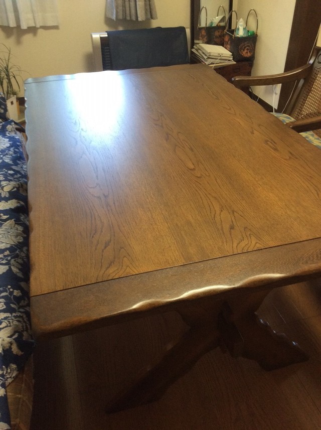 白木のオイル仕上げがご希望でしたが深いキズがあり少し色が残るので、塗装を着色ある色合いに仕上げています。
