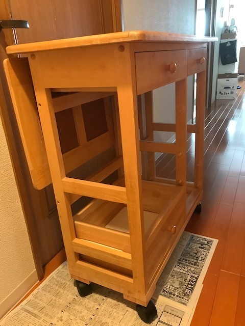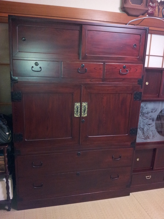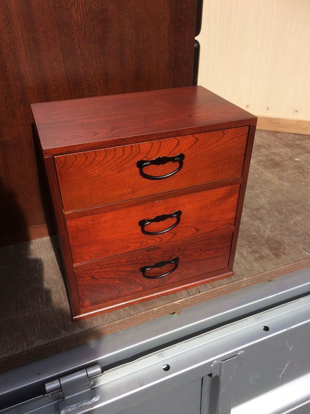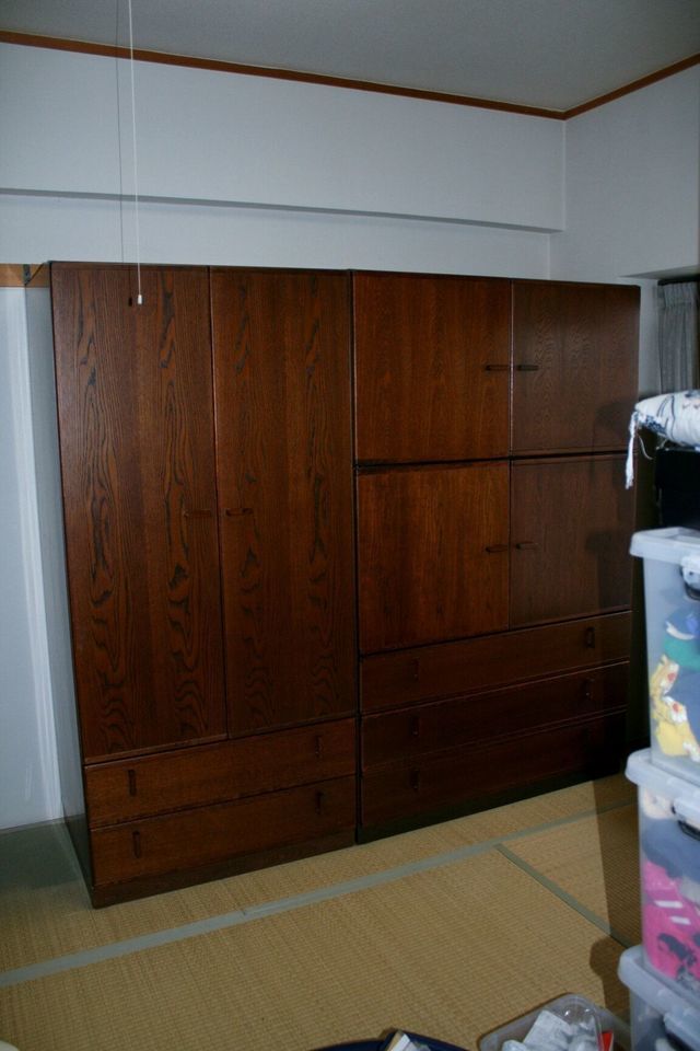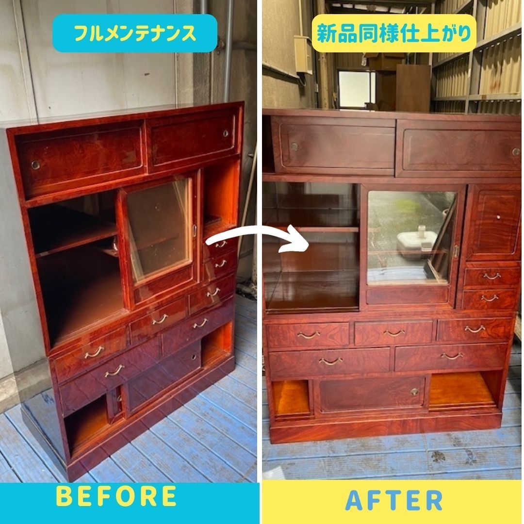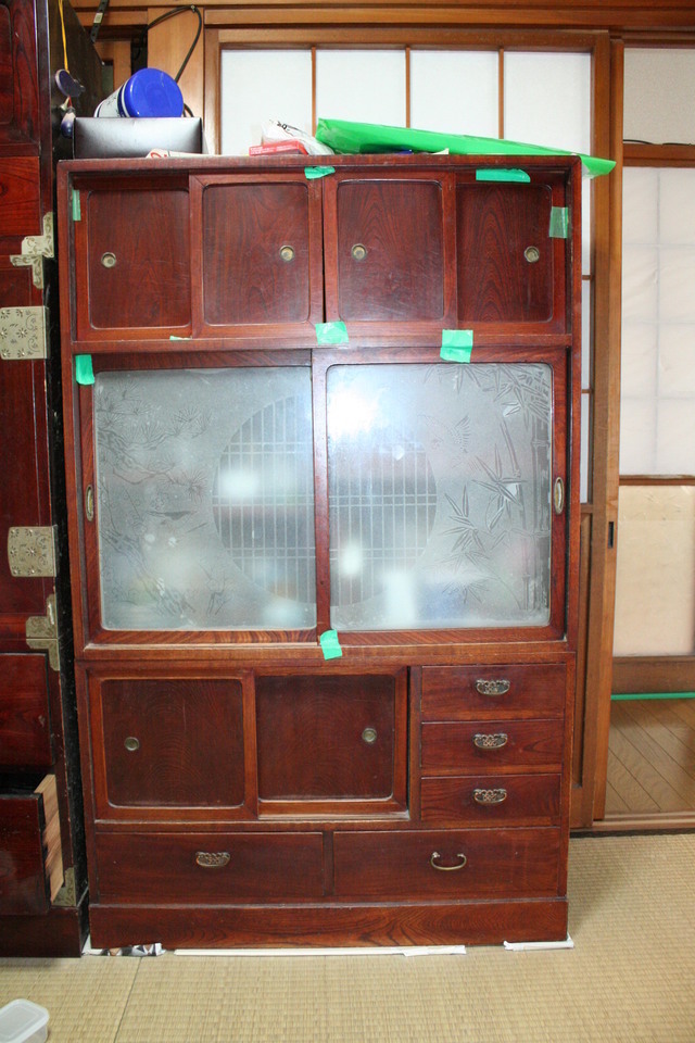 家を新築することになりこのままでは使うことが出来ないので、すべて手をかけて直しました。建て付けが悪い戸や引出のガタツキ、金具の洗い出しなどをして2か月を掛けて丁寧に直しました。新築の家で気持ちよくお使いいただけると思います。