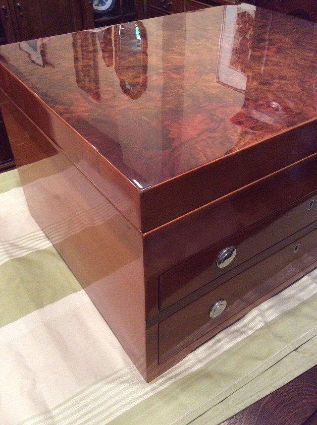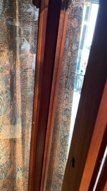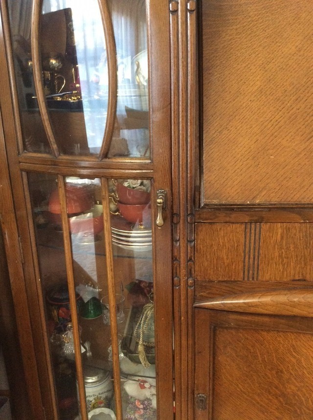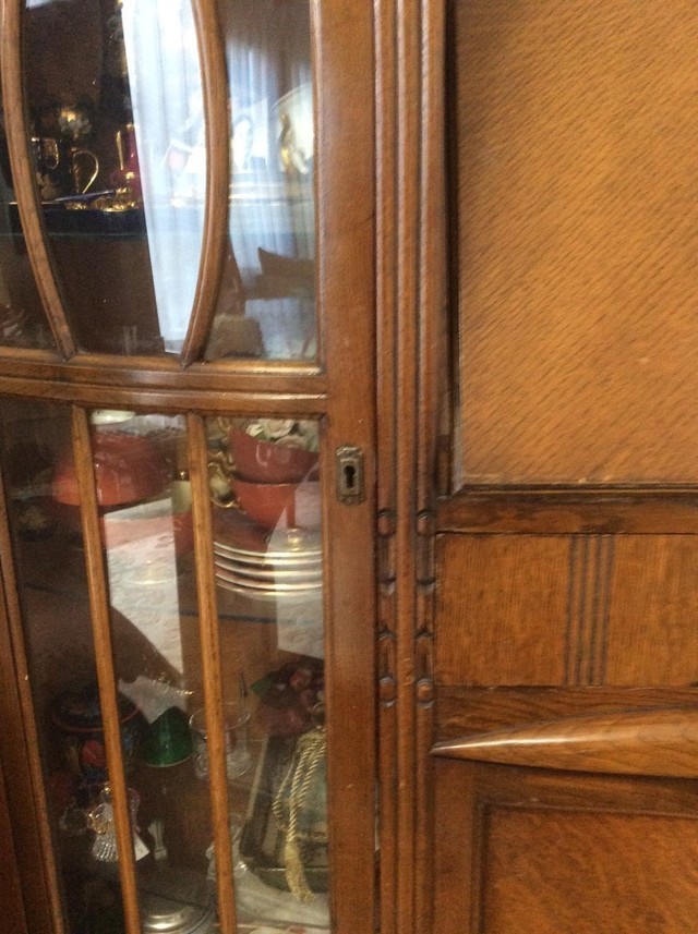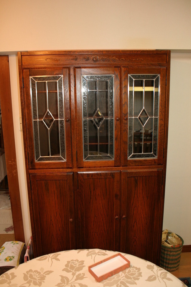今回の福島県沖地震でキャビネットが転倒し破損した状況を目の当たりにした時は大きなショックを受けました。とても気に入っていたキャビネットのため、何とか修復できるところが無いかと色々と探したのですが、ステンドグラスの修復をしているところは無く諦めていたところ、ファニチュアヒロシさんのホームページを拝見し、アンティーク家具の修復、さらにステンドグラスの修復も行っていることを知り、キャビネットの修復を依頼しました。修復されて元通りになって戻ってきたキャビネットを見てとても感激いたしました。粉砕されたステンドグラスも綺麗に修復されており、雰囲気も損なわずに以前の状態に戻っていました。家具の歪み・隙間もきちんと修復されており、また欠損していた部分も元通りになっていました。見事な修復技術にとても感心いたしました。