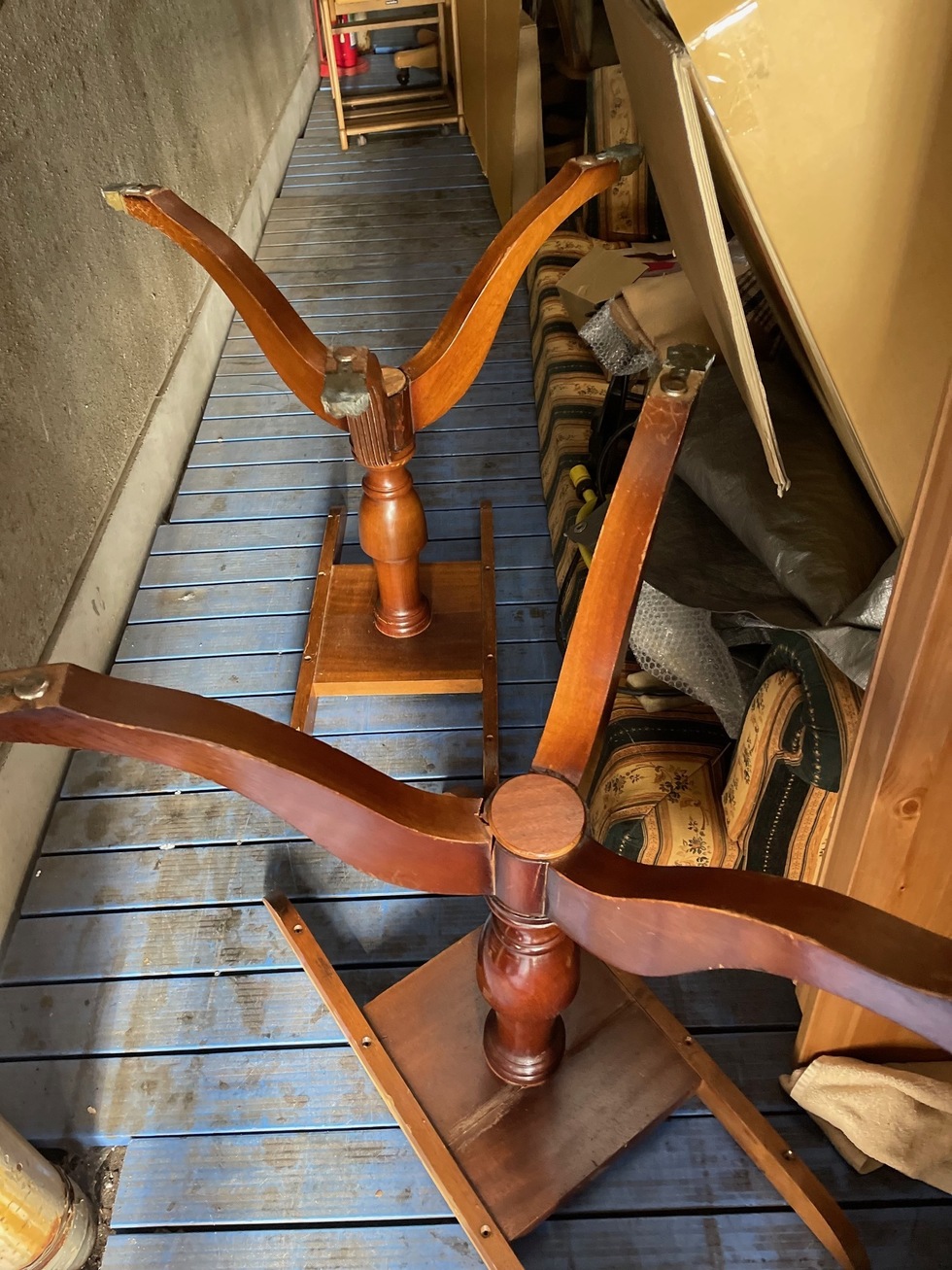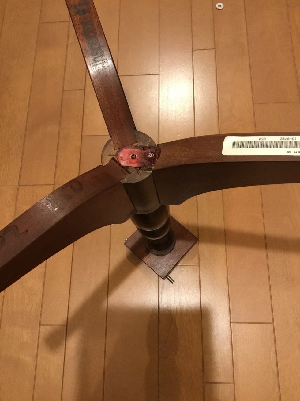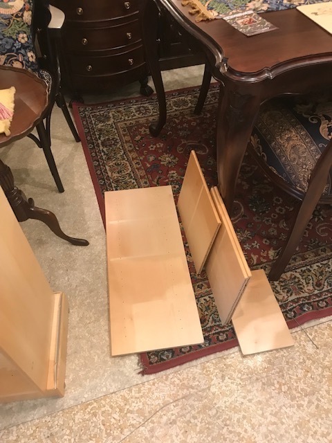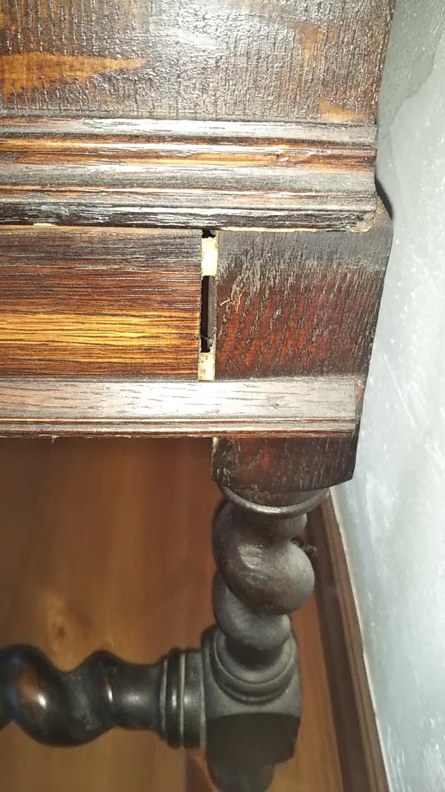 ヨーロッパのアンティークリプロダクションの家具で、ノックダウン式の組立家具でした。分解してるので、時間が経つと組み立てる時に少し技術が必要とされ調整をすることになります。