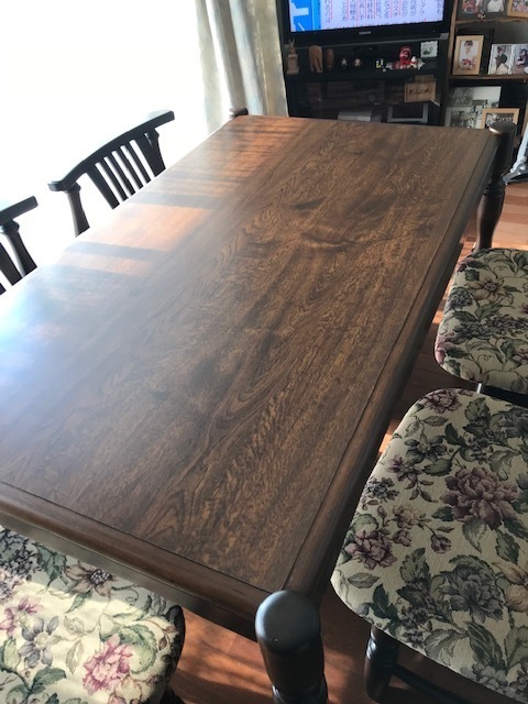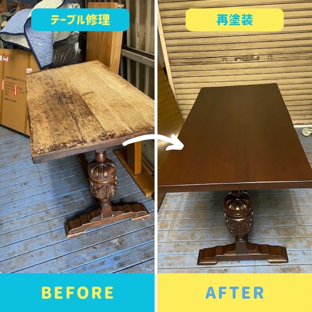 テーブルの天板も再塗装できれいになると新品同様の仕上がりにお客様にも喜んでいただきました。