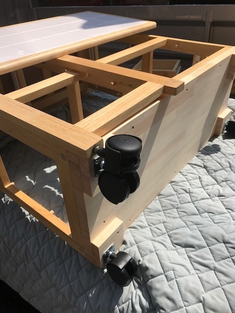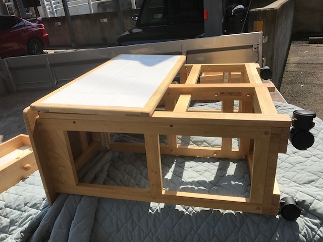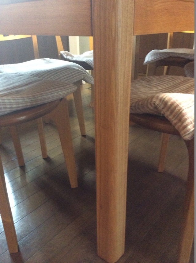 テーブルの脚は下の部分10cmの所に横に切れ目が出来ましたが、無事完成です。