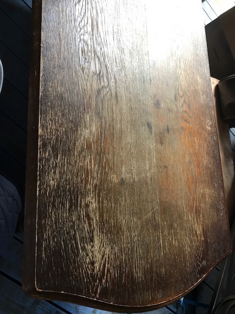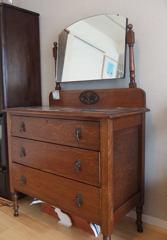 おじいさんが使い捨てないでこれからも使い続けたい古い家具なので、使い込まれたキズや汚れもあり塗装が剥がれて下地の木の色が出ていつ所もありましたが丁寧に直しますが、どこまで手を掛ければいいかが問題になります。きれいに直すことは出来ますが物を作るよりも手間がかなり掛かります。手を掛けて仕上が良くなれば使いたくなると思います。思い出の物を大切に使う心がアンティークとして残してくれます。 <苦労したところ>