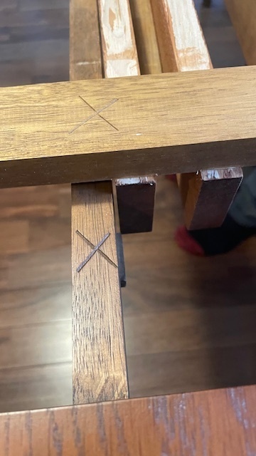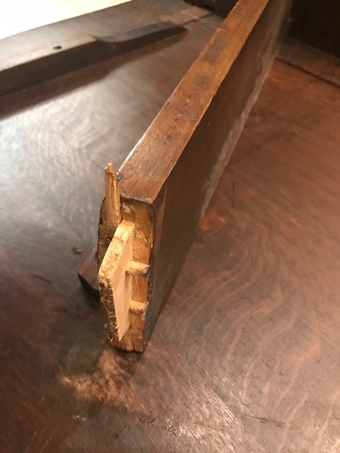 ほぞで組まれた角が割れた画像です。