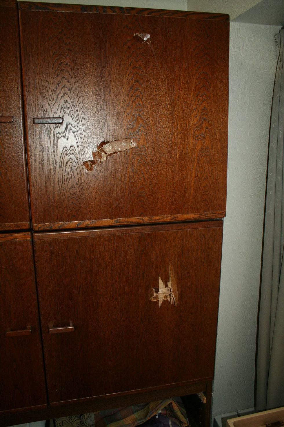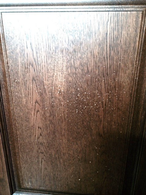 家具から虫が出て小さなキズがだんだん増えてきて気持ちが悪いと電話が入りました。見せてもらい確認しましたが木くずもなく凹みキズで虫はいませんでした。何か扉に当たり小さなキズが出来ていたようです。お客様も虫ではないので安心されまました。