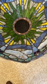 ステンドグラスは小さいガラスを組み合わせて鉛で囲んであり丈夫です。中央部分の破損なので交換になります。