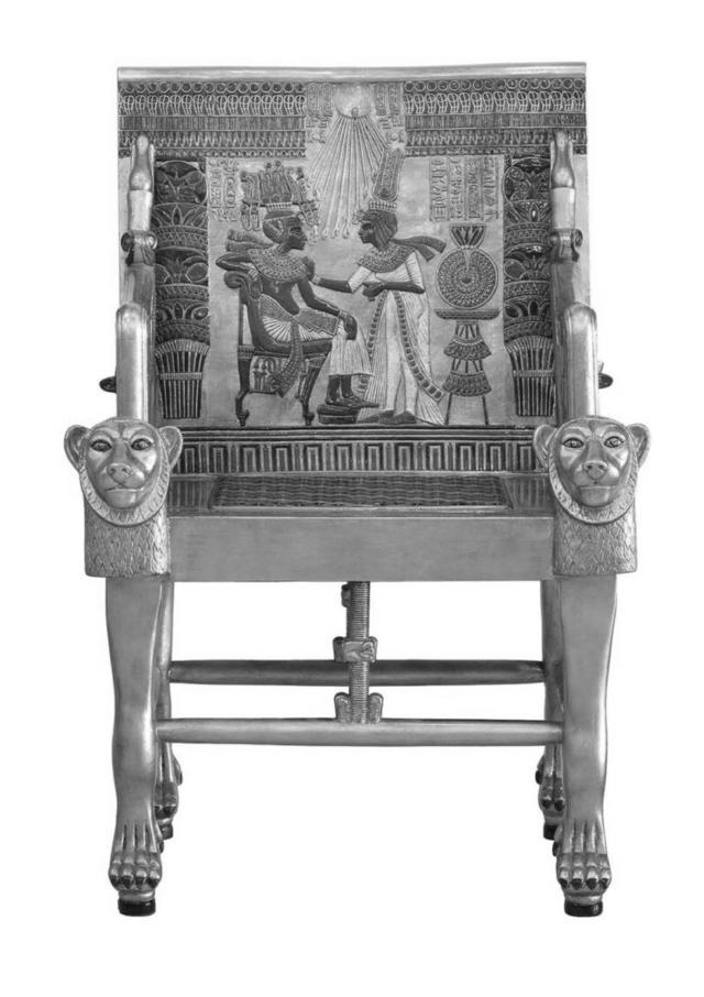 ツタンカーメン王黄金の玉座で、背もたれ付きの装飾がありイスはステータスシンボルで支配階級の特権です。