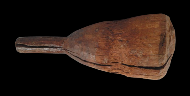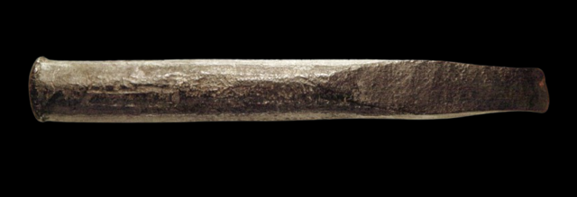 今から3500年前に使われていた鑿(ノミ)や木槌(キヅチ)で家具や石灰岩にレリーフや彫刻が彫られていたようです。古代エジプトでピラミッドや神殿などは見ることがありますが、当時の職人が使い作らた建物、壁画や家具などがどのように作られたかを見ると、鑿(ノミ)や木槌(キヅチ)は同じ使い方をしていると思いました。写真の左側 木槌(キヅチ)サイズ:長さ34cmX直径12.5cm片手に木槌を持ち、木材に鑿を斜めにあて木槌で叩いて物を作ることは今の職人さんと同じようです。写真の中央 鑿(ノミ)サイズ:長さ18cmX直径2.5cm鑿は、青銅で作られておりよく工事現場や彫刻家使うのと同じように見えます。写真の右側 鑿(ノミ)サイズ:長さ14cmX直径3cm持ち手の部分が木製で、先に金属のついているのは彫刻刀と同じようです。