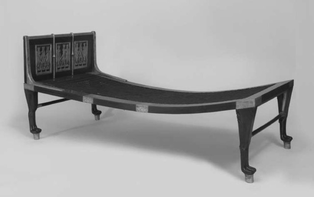 ツタンカーメン王の折り畳み式寝台のマットレス部分は網細工で、色々な素材を紐にして弾力性のある張感のある寝心地の良いベッドのようです。