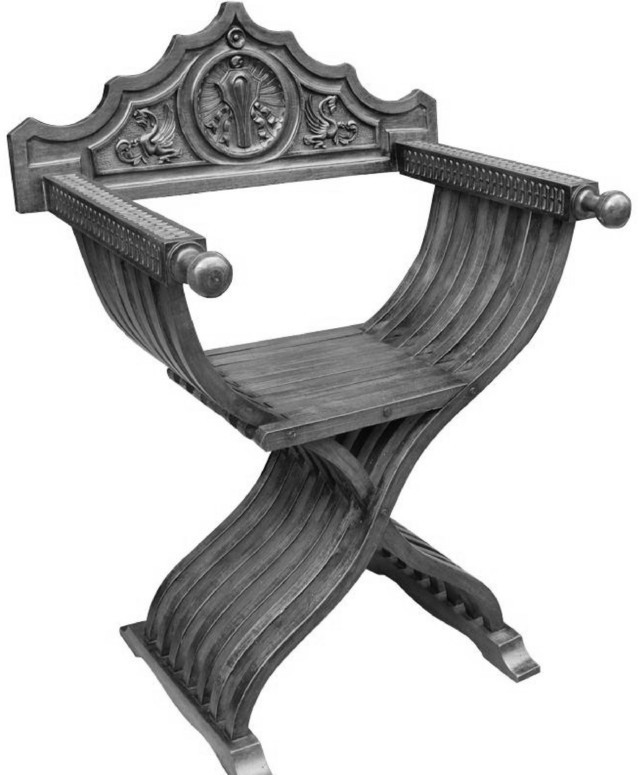 修道士サヴォナローラの名が付いている椅子です。アームチェアで軽くて持ち運びが出来る、背の部分がはずれて折りたためます。座り心地が良く現代でも作られているイスです。