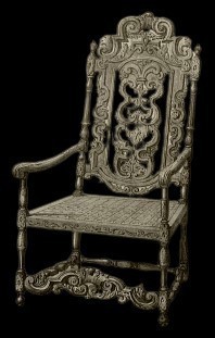 ルイ14世が座られたオーク材で作らた彫刻や装飾がたくさん含まれています。玉座のイスとして宮廷作家職にによって作られたものが、今でも少しずつ変えて作られた歴史もあります。マッキントッシュ(イギリス)のハイバックチェアは、バロック様式のウイリアム&メリー時代(1600年後半)のラダーバックのデザインを元に作られているようです。歴史をたどると意外なつながりに驚きます。