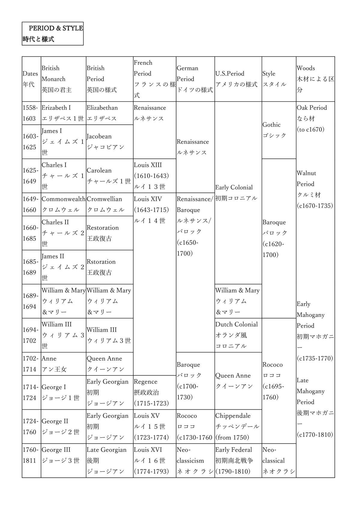 『 西 洋 家 具 の 歴 史 』