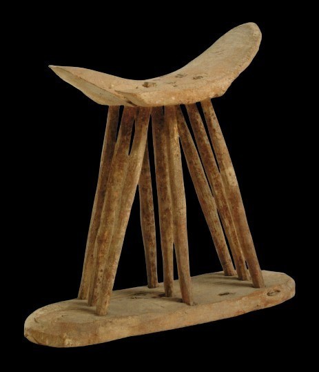 古代エジプトの時代に使われていた枕(Headrest)は、私たちが使う柔らかい物と違い頭を載せてる木製の台です。台座に3本の丸棒が中央と両サイドに9本で頭を、載せる湾曲した板を支えています。大きさは高さが20cmX幅22cmX奥行7cmですが、少し高さが高いようですがどのようにして使われていたか、調べてみます。